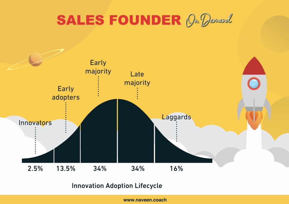 Technical Founders are visionaries, they see a gap in the market worth addressing and want to make a positive change. They achieve this by leveraging on what they love most, which is innovation. It’s just that, the journey to get there is not as straightforward. To avoid the pitfalls that have caused many startups to fail. Technical Founders need to pay specific attention to the Innovation Adoption Lifecycle. In particular, how to seamlessly negotiate across each different customer segment and bring their innovation to market while collapsing time. Employing a sales mindset from the start will be a significant differentiator and competitive advantage